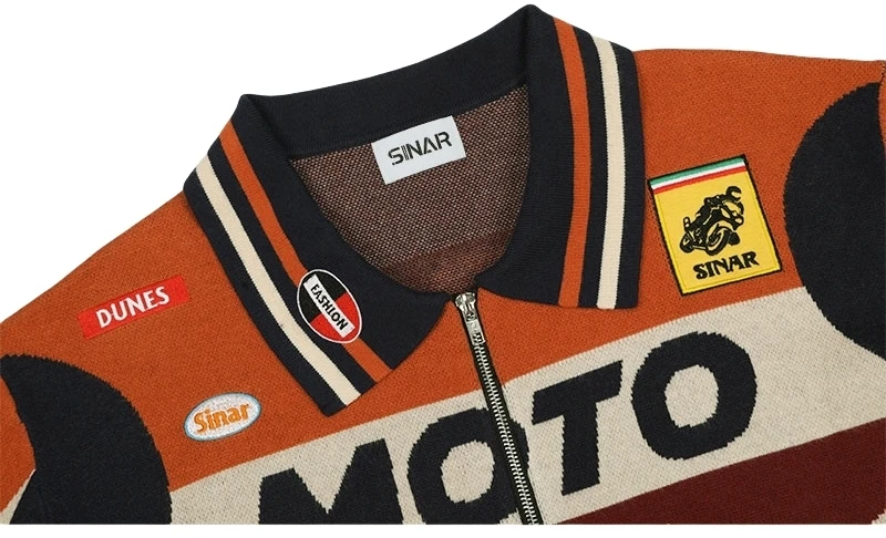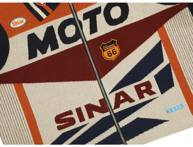 Custom Sweater Men Casual Knitwear Zip up Motorcycle Jumper Knitted Vintage Racing Jacket