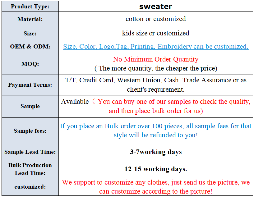 | Customized; | We support to customize any sweaters, just send us the picture. we can customize according to the picture! |
